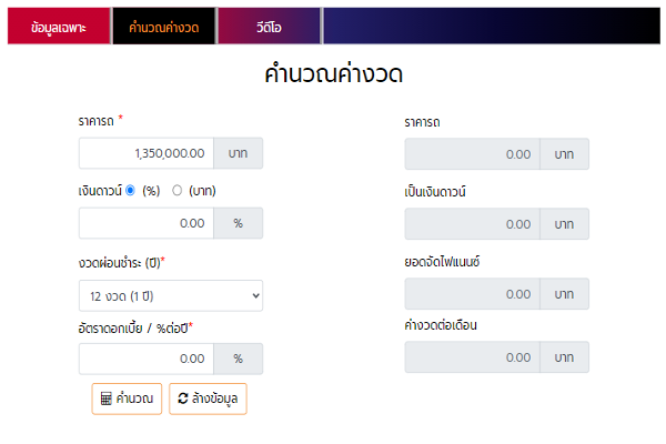 Web Site ขายรถยนต์
