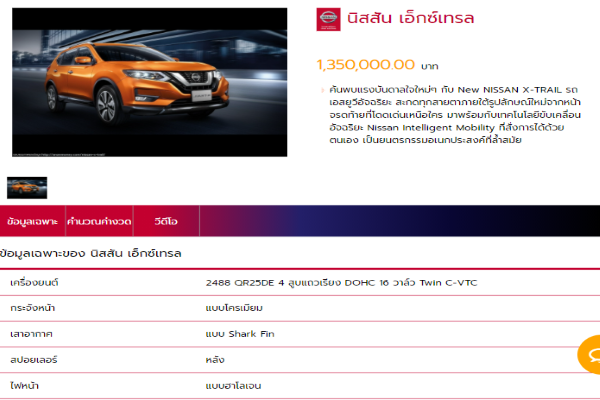 การนำเสนอสินค้า แสดงรุ่นรถพร้อมกับรายละเอียดของรถ ที่ต้องการขาย แยกตามยี่ห้อ รุ่นหลัก รุ่นย่อย แสดงข้อมูลเฉพาะ