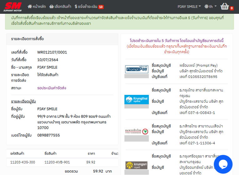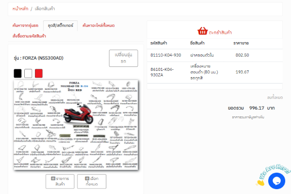 Web Site ขายสินค้าอะไหล่รถมอเตอร์ไซด์
