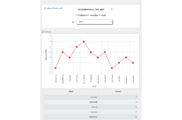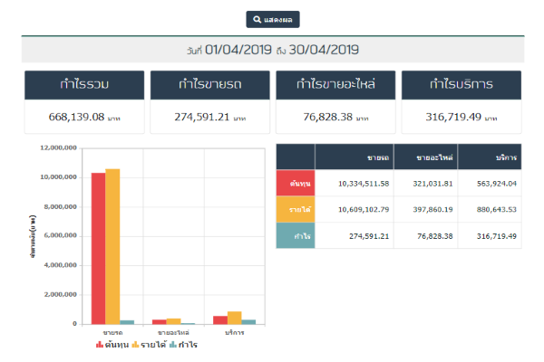 กลุ่มของ Dashboard เป็นการสรุปยอดสำคัญๆ เช่น รายได้เดือนนี้ จำนวนรถที่ขาย เป็นต้น