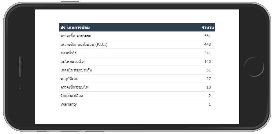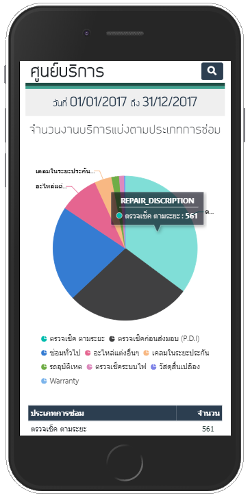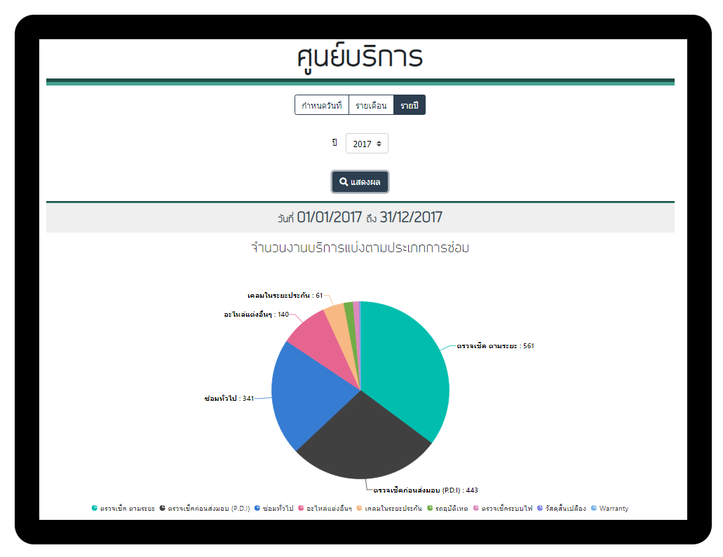 แสดงจำนวนการซ่อม โดยจะแสดงตามเงื่อนไขที่เลือก