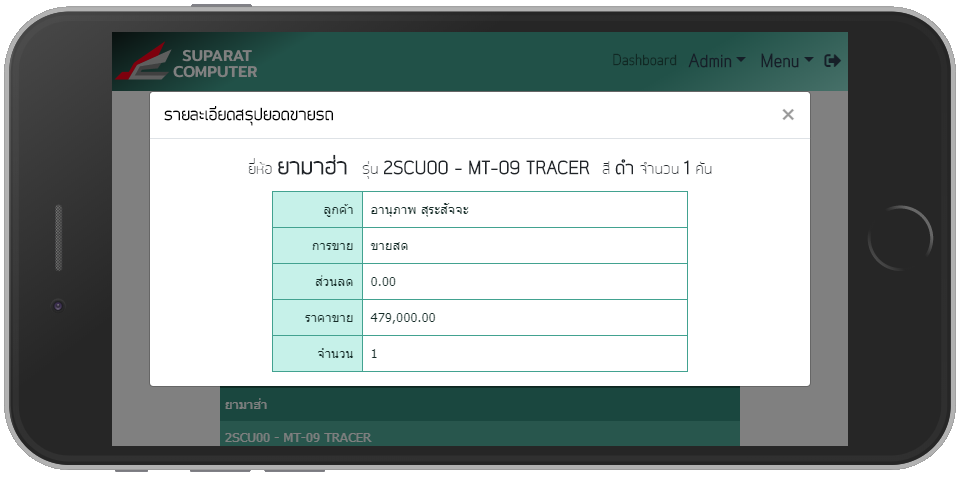 เมื่อกดปุ่ม จะแสดงรายละเอียดสินค้า (เช่น ยี่ห้อ รุ่น จำนวน ลูกค้า ประเภทการขาย ส่วนลด ราคาขาย เป็นต้น)